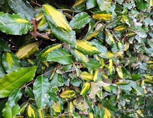 It is easy to grow, relatively fast growing which makes it suitable for screening or hedging. Fully hardy, it requires very little attention other that (as with all shrubs) water during the first year to get established. It will grow in dry shade and is drought tolerant. Wet winters and poorly drained soil can cause it to look like the second image. Always plant in drier areas.